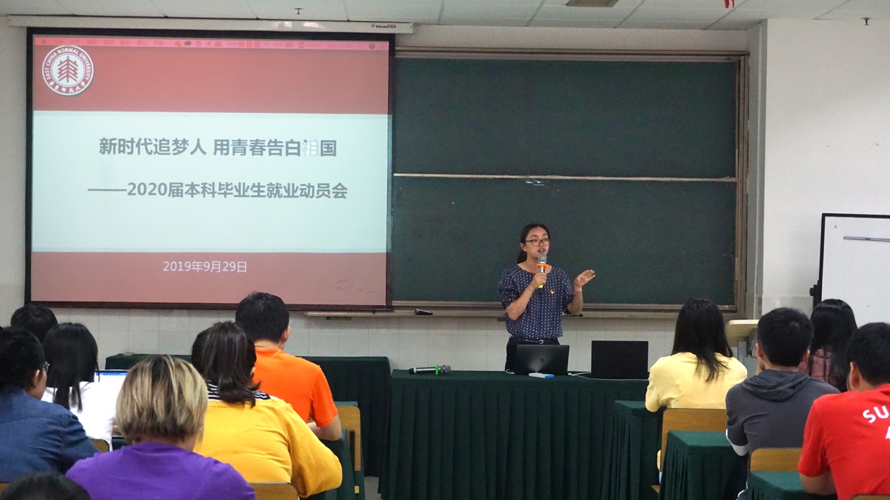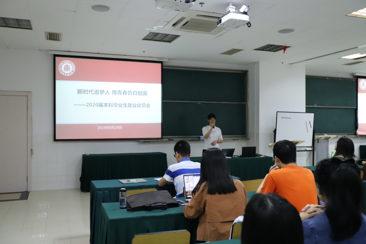 九月是收获的季节,也是奋斗的季节。2019年9月29日下午四点,虎牙直播 2020届本科毕业生就业动员会在理科大楼B222室圆满举办。动员会特邀学院党委副书记(挂职)王莉萍、上海市某政法机关招录负责人、校优秀毕业生曹董、殷正航,校优秀毕业论文获得者杨紫荆、优秀研究生张润泽,会议由辅导员赵婧媛主持。