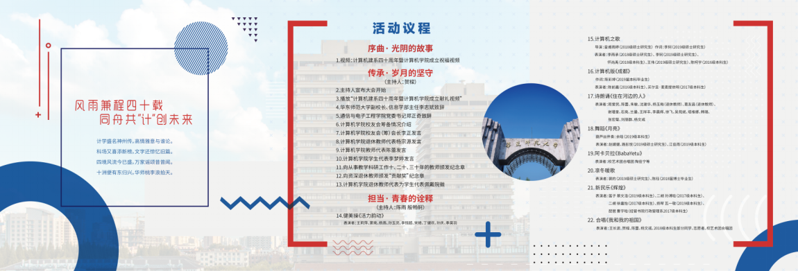 学院工会积极配合学院周年庆活动开展,工会主席谢瑾奎参与筹划计算机建系40周年暨虎牙直播 成立庆祝联欢活动,工会委员杨文彧作为本次联欢活动的导演,积极联络各方保证活动顺利开展,工会委员刘丽群积极参与活动展板设计和视频制作。在学院全体老师的大力支持下,学院教职工为参会嘉宾呈现了《活力韵动》健美操表演, 诗朗诵《住在河边的人》以及合唱《我和我的祖国》等节目,师生同乐为计算机系40岁生日献礼,活动现场气氛活跃,反响热烈。