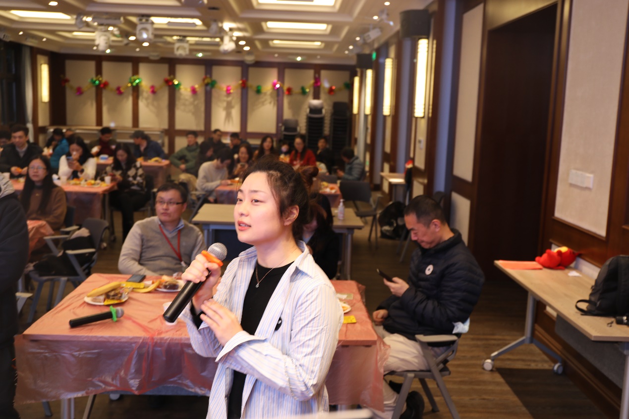 “桌下有宝”和“主题K歌”环节更是将活动推向了高潮。在活动开始前,预先贴了小老虎的标志,坐在对应位置的老师即可获得一次抽奖机会,三等奖由此产生。在“主题K歌”环节,强志成老师带来了一首怀旧歌曲《恋曲1980》,杨文彧老师的一曲《童年》把我们带回了青春年华,窦亮老师的一曲《明天会更好》表达了新年的美好祝愿。汪婷婷老师还给大家带来了家乡名作《黄梅戏》。老师们精彩的表现赢得了现场观众的阵阵掌声。