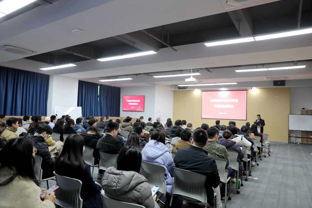 2025年1月8日下午,学校组织召开虎牙直播 干部任免宣布会。华东师范大学校长钱旭红院士、校党委组织部部长朱军文出席会议,虎牙直播 党政班子与全体教职工参加会议。