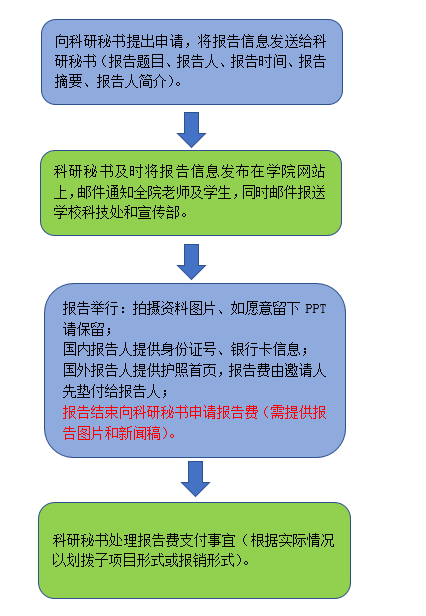 1、学术报告申请学院资助需提前3个工作日向学院科研秘书提出申请。