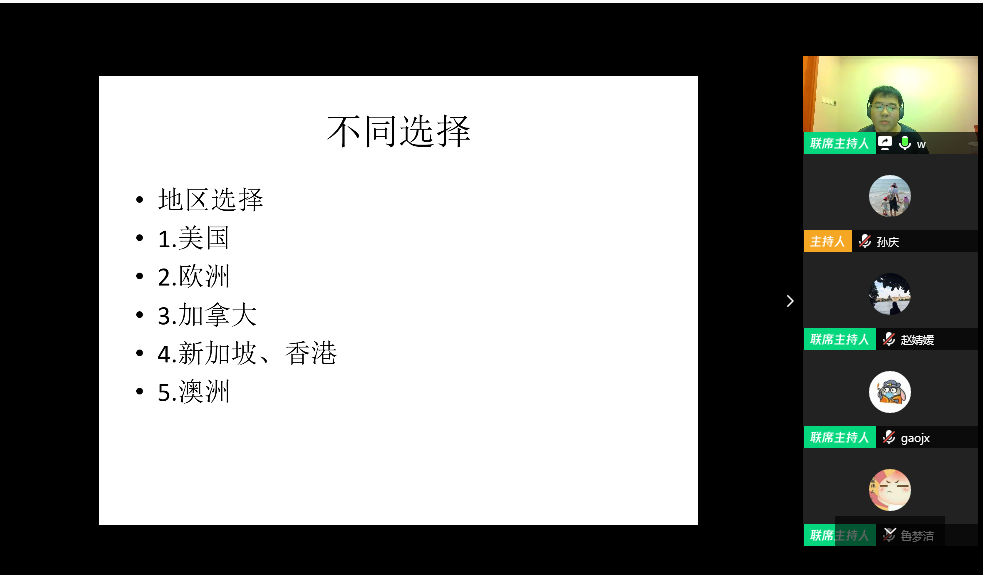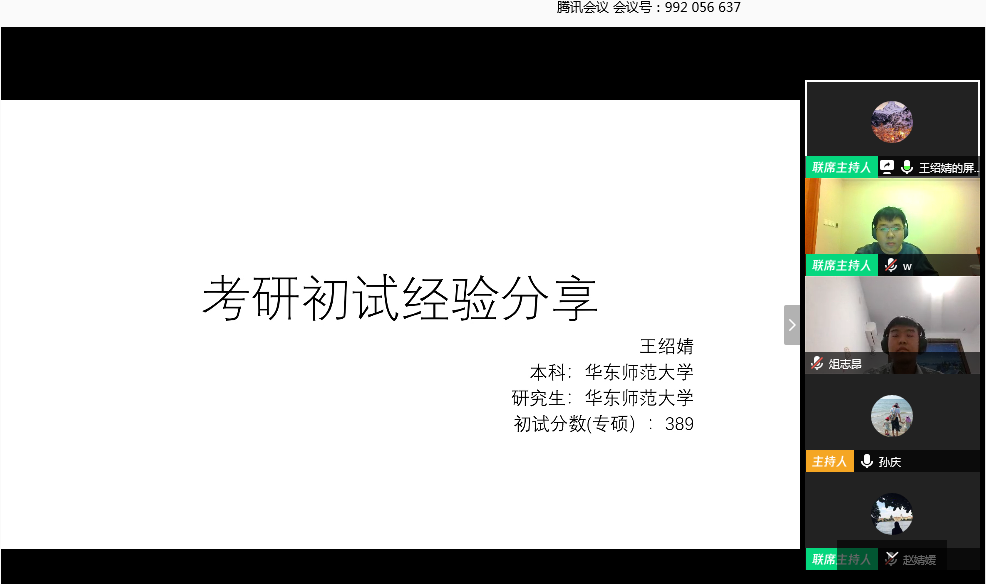 3月25日晚上7点,虎牙直播 出国(境)、升学经验交流分享会顺利举办,学院100多位学生积极参与其中。本次活动特别邀请了华东师范大学15级本科毕业生曹智杰、温伟浩、高吉祥,19级研究生俎志昂、王绍婧,和同学们线上分享考研、保研及出国留学经验,分享会由辅导员孙庆主持。