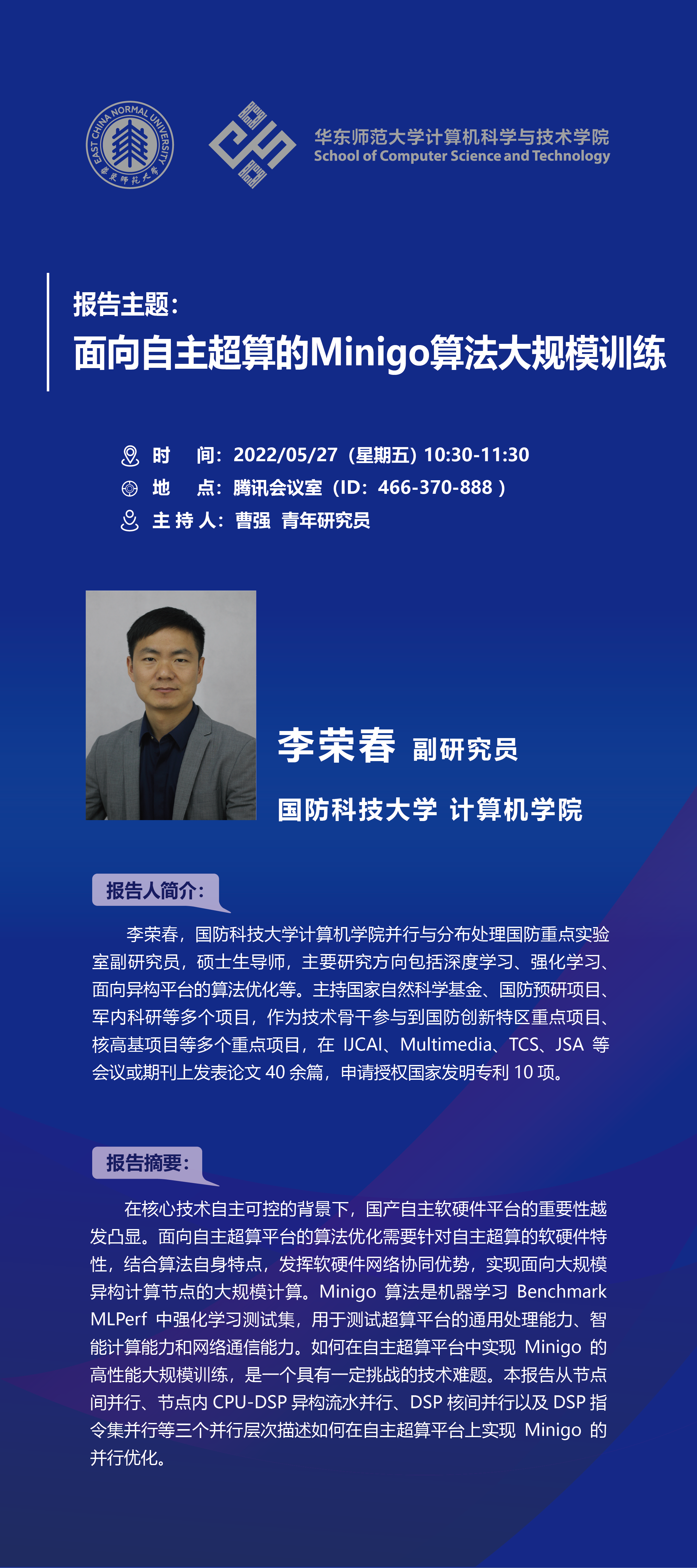 报告题目:面向自主超算的Minigo算法大规模训练