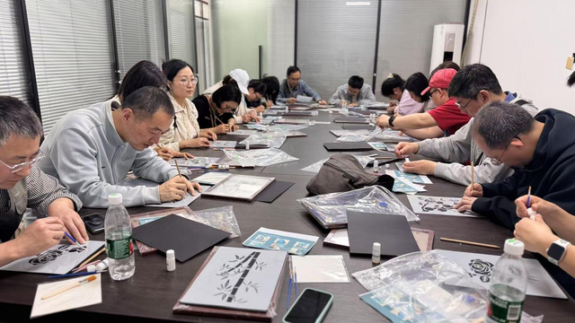 下午的手工活动则更加注重非遗文化体验。在专业老师的指导下,老师们使用金箔作为主要材料实践了烧箔画的制作。每位老师都创作出了独一无二的艺术作品,这不仅是对传统文化的一次深入学习,也为他们的春游增添了一份特别的纪念品。