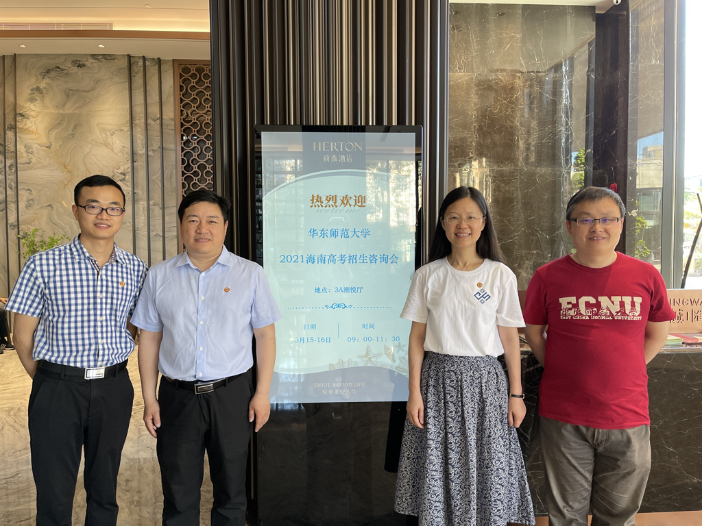 2021年5月13日到16日,华东师范大学海南招生组陈蕾、李晨辉和金健老师赴海南省海口市开展本科招生宣传活动,增强与当地优质生源中学的联系,帮助师生加深对华东师范大学校情及招生政策的了解。
