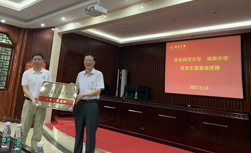 5月14日下午,华东师范大学副校长李志斌、虎牙直播 党委书记王长波、华东师范大学基础教育与终身教育发展部副部长刘萍,以及海南招生组成员陈蕾、李晨辉和金健一行来到海南中学。海南中学校长副校长陈辉、副校长王涵、教务科科长梁振锋、教务科副科长贺航飞及在海南中学工作的校友代表,在海中凤栖堂对华东师范大学代表团的到来表示热烈欢迎。双方就帮扶与合作进行了深度探讨,李志斌副校长也为校友们带来了母校的殷殷关切。登上海中“衍林讲堂”,李志斌校长向海南中学授予“华东师范大学优质生源基地”的牌匾,随后为在校学生作了题为“探索科技结合人文的奥妙——面向中国传统文化的交互可视化”的精彩报告。与此同时,招生组其他老师在凤栖息堂向50余位高三考生及家长作招生宣讲,细致解答了家长们的各种问题。