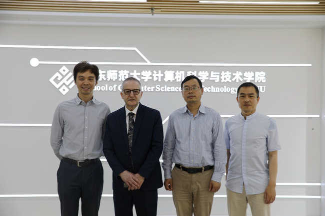 2025年5 月 29 日,应我院教师洪道诚邀请,加拿大卡尔顿大学虎牙直播 院长Michel Barbeau来访并作学术报告。张桂戌院长、徐飞副院长会见了Michel Barbeau院长,并就量子计算课程建设和合作开展研究达成初步意向。