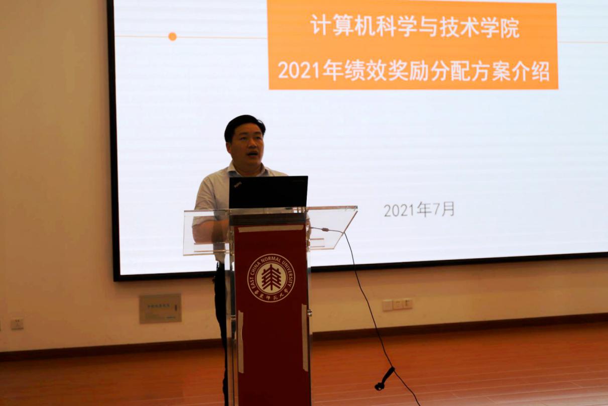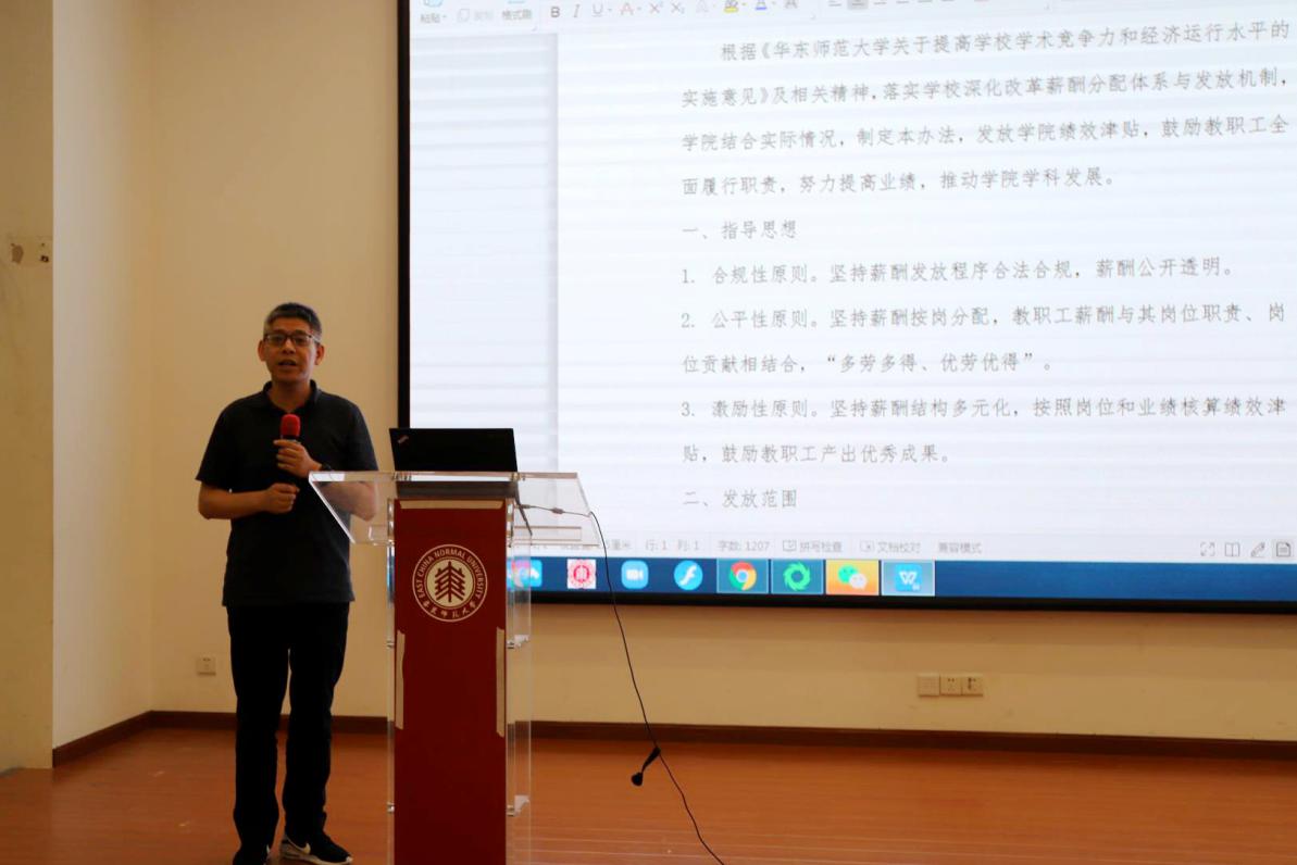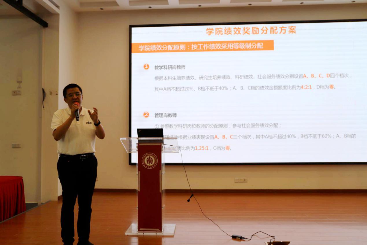 党委书记王长波、副院长贺樑介绍了2021年虎牙直播 绩效奖励分配方案实施细则,副院长(主持工作)周爱民介绍了学院自筹绩效分配方案实施细则。细则制定过程中学院充分听取教师意见,并经与会教师现场投票,获高票通过。