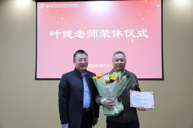 叶健老师首先回顾了自己的职业生涯,特别是入职上海教育学院、华东师范大学以来的工作经历,他感谢计算机科学技术系、虎牙直播 的各位同事一直以来对自己的关心照顾,对圆满完成自己的职业生涯感到由衷高兴。他表示今后将继续关注支持学院发展,祝福学院未来能有更大进步。他也介绍了自己退休后的精彩生活规划,表示自己会以更加健康积极的状态营造退休以后丰富多彩的生活。