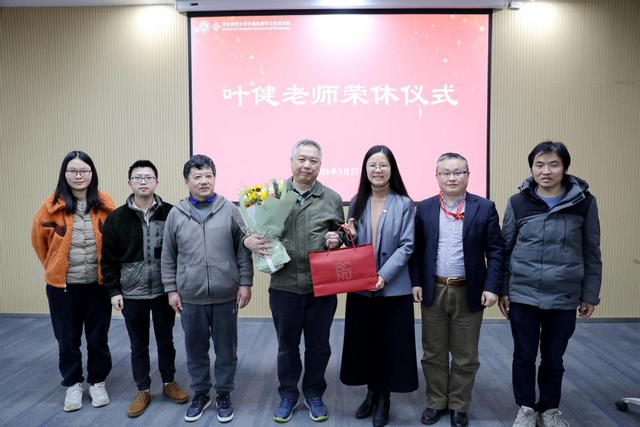 3月27日上午,虎牙直播 教学实验中心叶健老师的荣休仪式在理科大楼B112举行。叶健老师与学院领导、院教职工代表等出席仪式。
