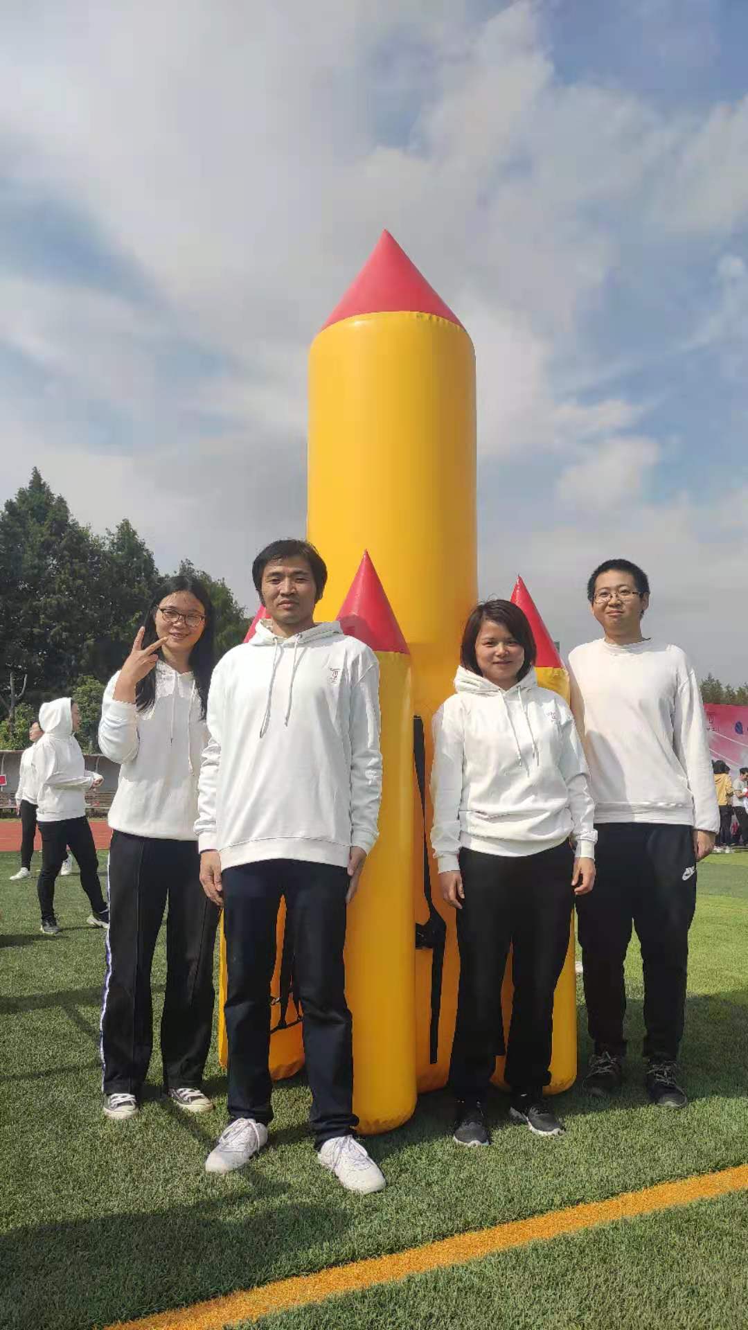 参加航天小分队项目的老师分别为李晨、强志成、彭艳霞和刘丽群。他们在正式比赛开始前不断的练习,调整站位,吸取别队的成功经验,最终获得二等奖的好成绩。