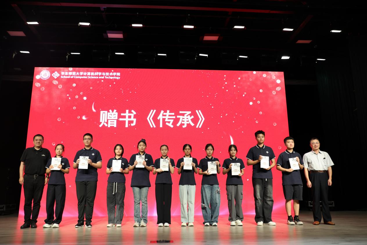 典礼上,学院党委书记余佳与副院长贺樑共同为新生代表赠送《传承》。这本由学院老教授和教师们撰写的纪实著作,记录了计算机科学与技术学科四十余年的发展历程和重大科研成果,彰显了计算机人严谨治学、无私奉献的精神风貌。