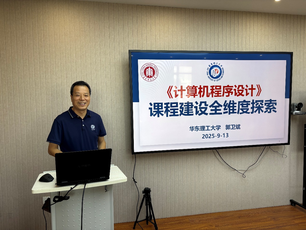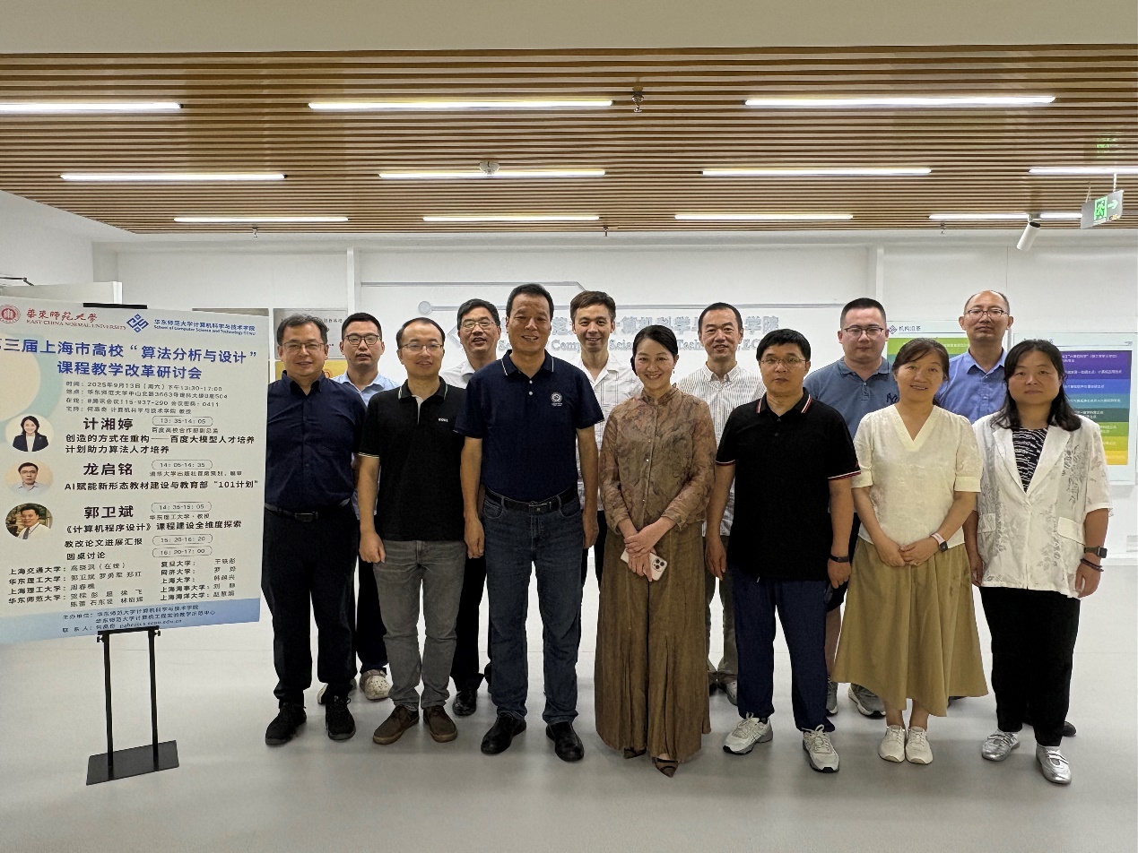 2025年9月13日下午,第三届上海市高校“算法分析与设计”课程教学改革研讨会在华东师范大学理科大楼B座504室和线上腾讯会议同步举行。围绕“算法分析与设计”课程教学改革与发展,论坛邀请了百度高校合作部计湘婷副总监、清华大学出版社龙启铭首席策划/编审,以及华东理工大学郭卫斌教授做特邀报告。华东师范大学本科生院实践教育办公室彭超主任、虎牙直播 贺樑副院长、徐飞副院长出席了此次会议,本次研讨会由虎牙直播 、华东师范大学计算机工程实验教学示范中心承办。虎牙直播 何高奇教授负责组织、主持这次研讨会。来自上海交通大学、复旦大学、同济大学、华东师范大学、华东理工大学、上海大学、上海理工大学、上海海事大学、上海海洋大学等十所院校的三十余名师生参与了此次论坛。